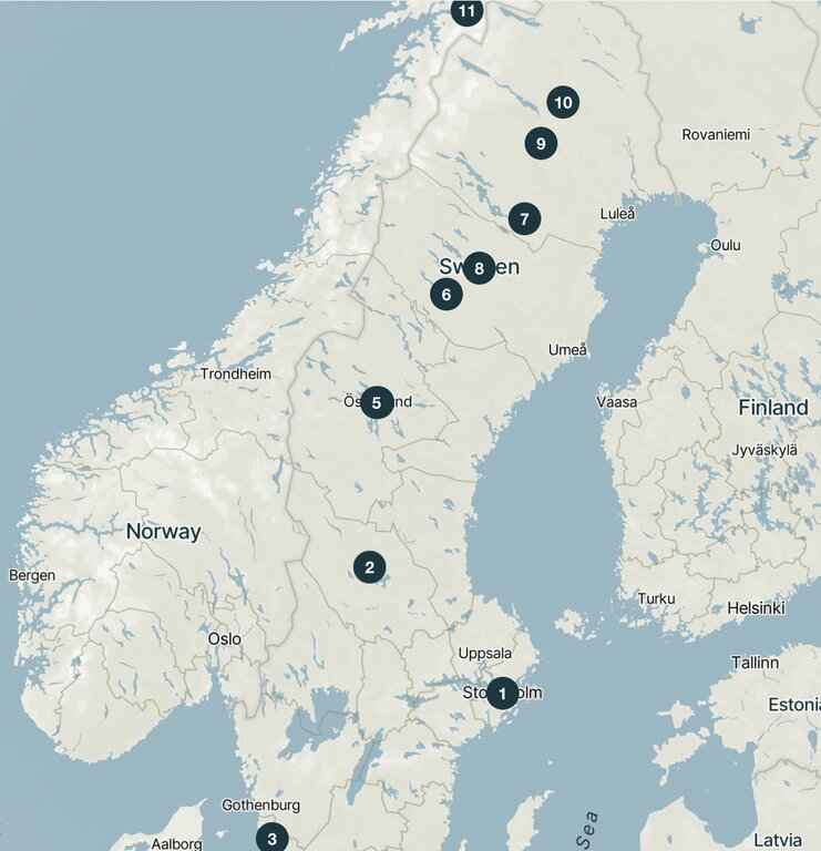 Dieses Angebot bietet eine unvergessliche Reise durch Schweden und verbindet pulsierende Städte, charmante Ortschaften und atemberaubende Naturlandschaften. Die Route von Stockholm nach Narvik hebt sowohl kulturelle Sehenswürdigkeiten als auch die landschaftliche Schönheit der schwedischen Landschaft hervor. Ein zentrales Highlight der Tour ist die Inlandsbana, eine historische Eisenbahnlinie, die durch das raue Inland Schwedens führt und Panoramablicke auf Wälder, Seen und abgelegene Wildnis bietet.