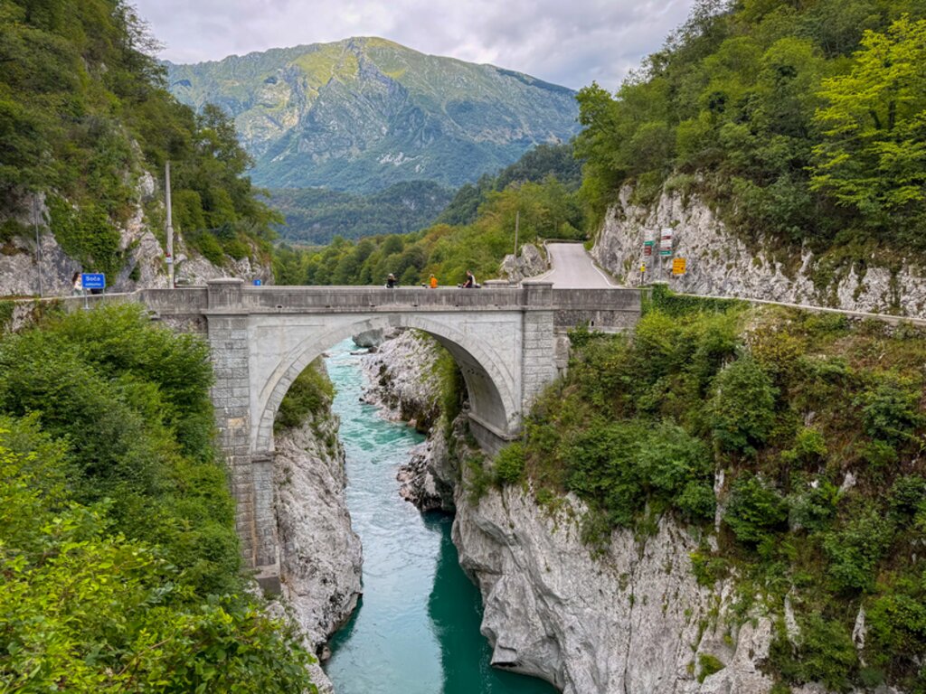 <Begleitet vom leuchtenden Grün der Soča radeln Sie durch ein von hohen Bergen umrahmtes Tal. Bei Kobarid queren Sie eine eindrucksvolle Soča-Schlucht über eine schmale Brücke, bei der Sie garantiert für ein Foto anhalten, bevor es weiter Richtung italienischer Grenze geht. Entlang des Flusses Natisone erreichen Sie die wunderschöne Altstadt von Cividale del Friuli. Alternativ wählen Sie die Passstraße und werden für die Anstrengungen mit einer landschaftlich großartigen Hochgebirgsfahrt und tollen Ausblicken belohnt. (ca. 45-60 km)