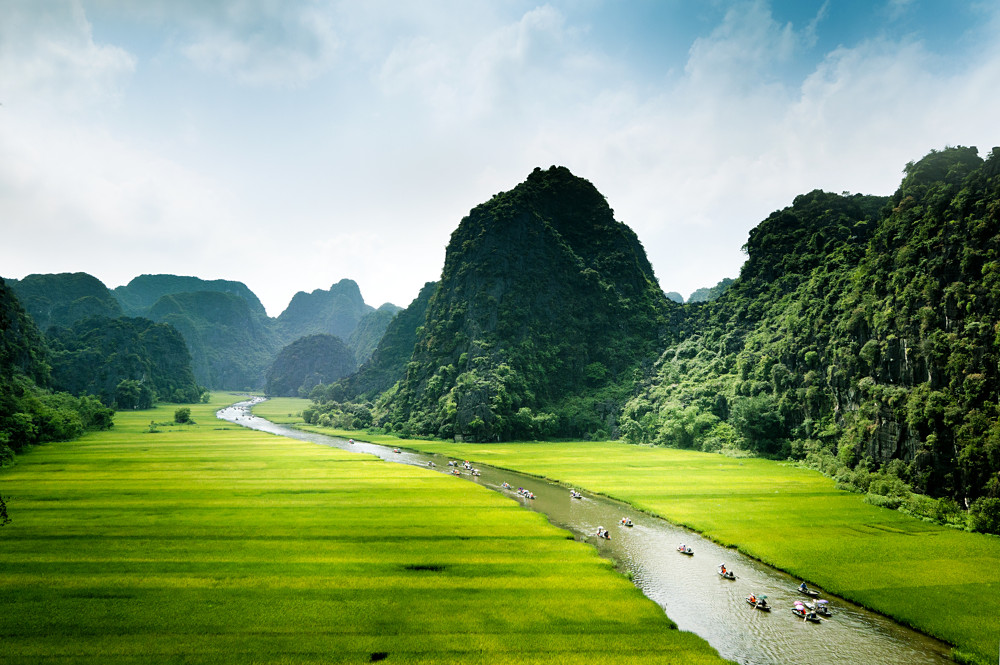 Um 08:30 Uhr verlassen Sie langsam das Stadtzentrum von Hanoi und fahren zum großen Dorf Tam Coc, das als „Halong-Bucht an Land“ bekannt ist. Nach Ihrer Ankunft in Tam Coc am späten Vormittag geben Sie Ihr Gepäck im Hotel ab, während Ihr Fahrer auf Sie wartet.