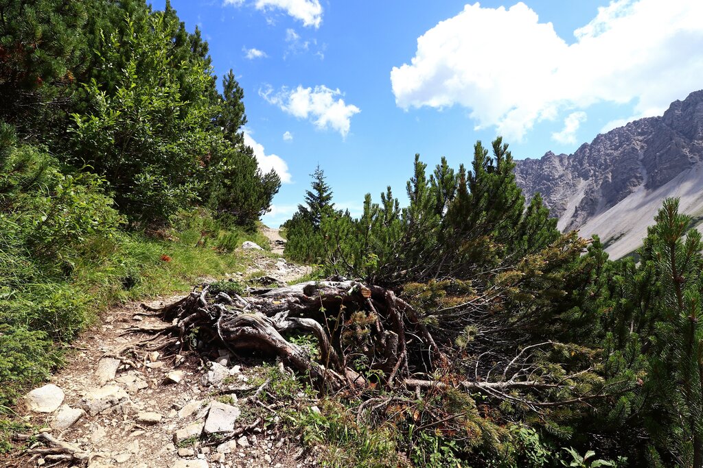 <Transfer in Richtung Hahntennjoch, wo wir unsere Wanderung hinauf zur Anhalterhütte starten. Danach steigen wir hinab aufs Joch und per Bus gelangen wir zu unserer heutigen Unterkunft. -