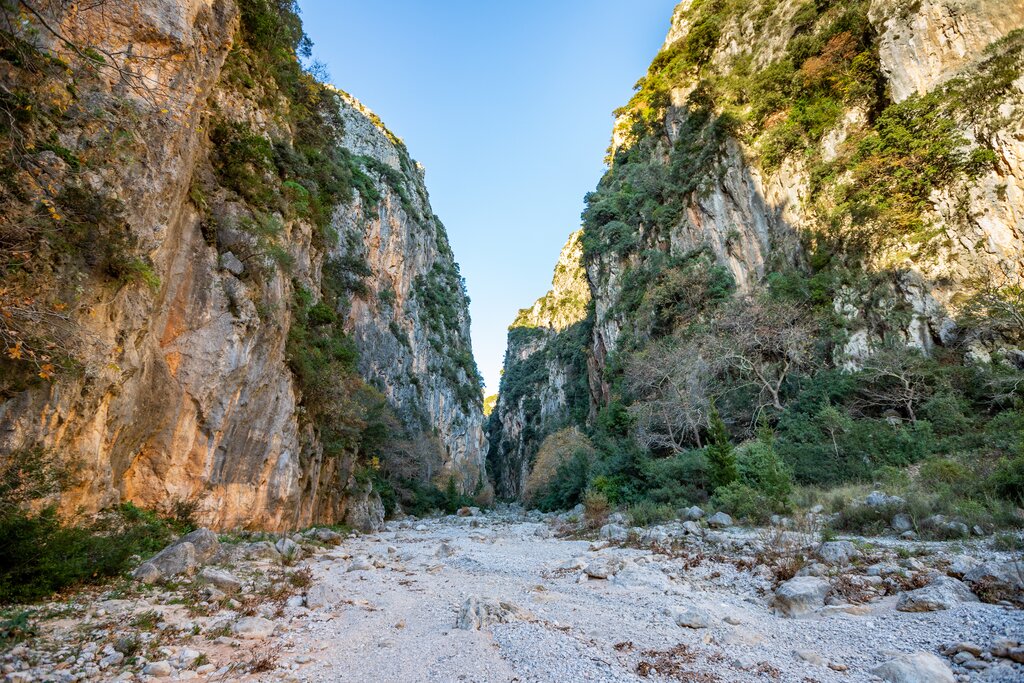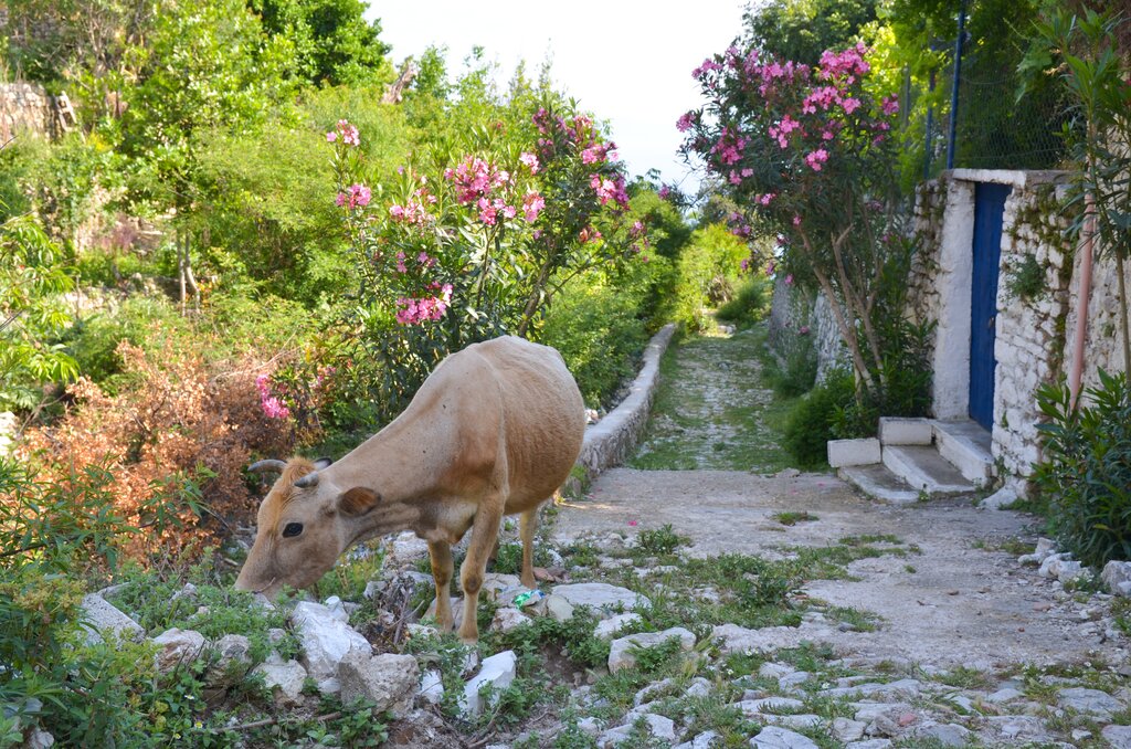 <Am Morgen fahren wir hinauf in die wilden Berge des Kurvelesh-Plateaus, wo zwei Quellflüsse der Vjosa entspringen. Schon die Route durch enge Schluchten und vorbei an steilen Felswänden raubt uns den Atem. Unsere Wanderung führt uns zu einem Aussichtspunkt hoch über einer hunderte Meter tiefen Kluft. Weiter geht es zu einem versteckten Wasserfall, dessen natürlicher Fels-Pool zu einem erfrischenden Bad einlädt. In einem einfachen Berggasthof stärken wir uns mittags bei traditioneller Kost und grandioser Aussicht. Am Nachmittag windet sich unser Weg hinab ins grüne Shushica-Tal und weiter an die Küste. Im entspannten Hafenort Himarë beziehen wir unser Quartier und spüren bereits die salzige Meeresbrise.