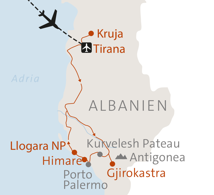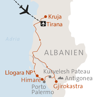 <Schon beim Anflug auf Tirana ziehen unter uns die ersten Bergsilhouetten Albaniens vorbei – unser Abenteuer beginnt! Am Flughafen werden wir von einem ASI-Vertreter herzlich empfangen und zu unserem Hotel gebracht. Wir haben Zeit, in Ruhe anzukommen und vielleicht schon die lebendige Hauptstadt auf eigene Faust zu entdecken. Am nächsten Morgen treffen wir dann unseren ASI-Guide zur offiziellen Begrüßung.