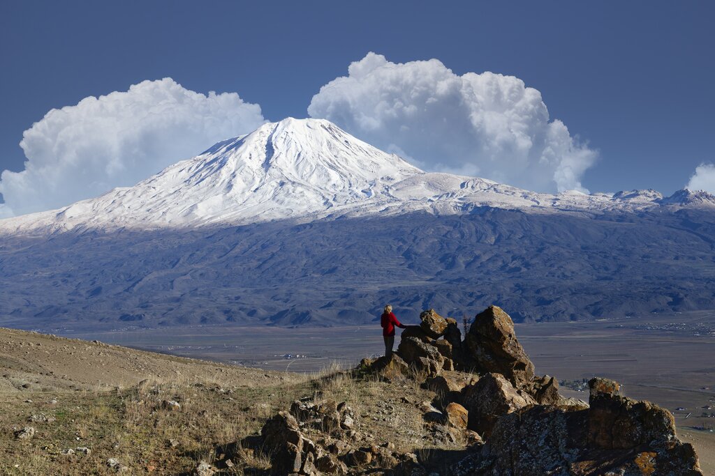 <Heute steht die Erkundung der Ararat-Ebene auf dem Programm, die biblisch als Ort bekannt ist, an dem Noah nach der Sintflut den Weinanbau begründet haben soll. Sie besuchen die abgeschieden liegende Kirche vom Heiligen Karapet, die in ihrer herrlichen Einsamkeit Ruhe und Geschichte ausstrahlt.