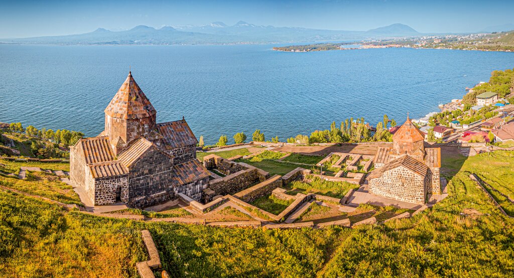 <Heute begeben wir uns auf eine Reise, die von Franz Werfels Roman "Die vierzig Tage des Musa Dagh" inspiriert ist. Wir starten unsere Tour am Dorf Musaler und setzen unsere Fahrt fort nach Etschmiadsin, dem Sitz des Oberhauptes der Armenisch Apostolischen Kirche. Danach steht der Besuch der Kirche Hripsime auf dem Programm, ein Juwel der armenischen Kirchenbaukunst und eine der ältesten Kirchen des Landes, erbaut im 7. Jahrhundert.