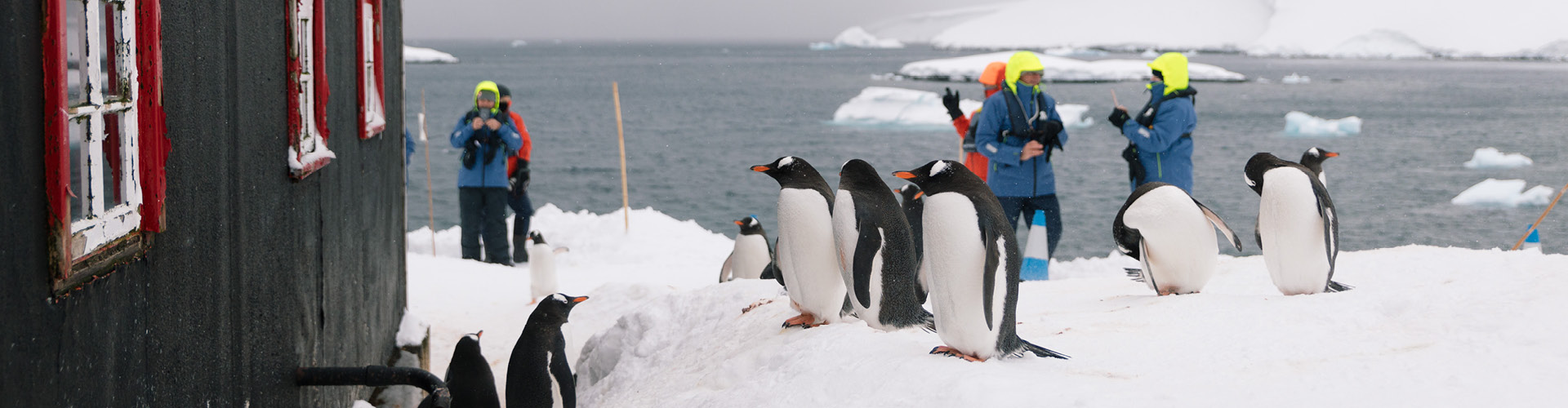 <Wache inmitten einer Welt aus Eis auf und genieße einen dieser "Ich bin so weit weg von zu Hause"-Momente. Heute durchquerst du den Antarktischen Sund und das Weddellmeer - in diesem Gebiet wimmelt es nur so von Wildtieren, also solltest du dein Fernglas und deine Kamera griffbereit haben. Halte Ausschau nach Adeliepinguinen, Robben und Orcas. Der Antarktische Sund ist bekannt für seine Tafeleisberge - große, flache Eisberge mit steilen Seiten.