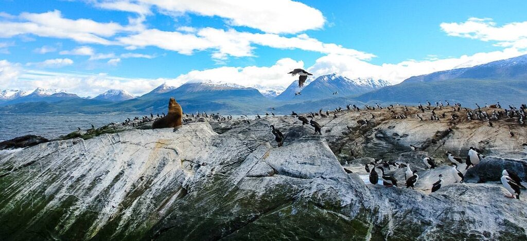 <Du fährst mit dem Katamaran zum Beagle-Kanal und hast bei gutem Wetter eine spektakuläre Sicht auf den Oliviaberg, den Gletscher Le Martial sowie Ushuaia selbst. Die Fahrt geht weiter zur Leuchtturminsel Les Éclaireurs, zur Insel der Kormorane und dann zur Seelöweninsel, wo du die drolligen Tiere beobachten kannst. Das Beste aber kommt zum Schluss: die Pinguinkolonie auf der Isla Martillo. So nah siehst du Magellan-Pinguine so schnell nicht wieder – zumindest nicht in freier Natur. Dann heißt es umkehren, denn nach diesen unvergesslichen Begegnungen geht es zurück in den Hafen von Ushuaia.