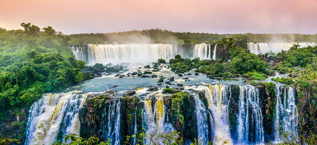 <Deine Reiseleitung erwartet dich am Flughafen Iguaçu und ist ganz bestimmt genauso gespannt wie du. Im Iguaçu-Nationalpark befinden sich die breitesten Wasserfälle der Welt, die auch zum UNESCO-Weltnaturerbe zählen. Du hast wahrscheinlich schon viele Fotos von den Fällen gesehen. Bald aber kannst du tatsächlich mitten in der Postkartenlandschaft stehen! Pro Sekunde donnern hier bis zu 6.500 Kubikmeter Wasser bis zu 90 Meter in die Tiefe. Du besichtigst die Wasserfälle von der brasilianischen Seite. Los geht’s am Besucherzentrum des Iguaçu-Nationalparks mit einer Fahrt durch die üppige subtropische Vegetation des Parks. Von verschiedenen Aussichtsplattformen hast du tolle Ausblicke und mitunter wirst du auf deinem Spaziergang von frechen Nasenbären begleitet. Wenn das Wetter mitspielt, sind vielleicht sogar bunte Regenbögen zu sehen. Am Abend kannst du dich von der Anreise und den ersten Eindrücken erholen.