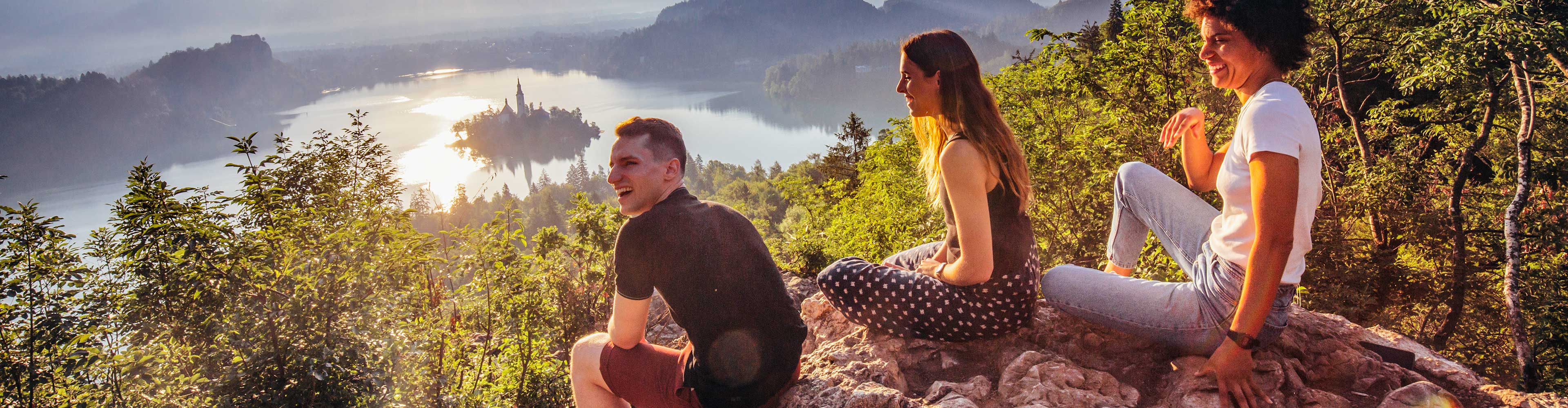• Entfliehe dem Stadtleben an den friedlichen Ufern des Bleder Sees in Slowenien. Vielleicht besuchst du die ikonische Kirche auf der kleinen, märchenhaften Insel in der Mitte des Sees und gönnst dir ein Stück der berühmten Bleder Sahnetorte.