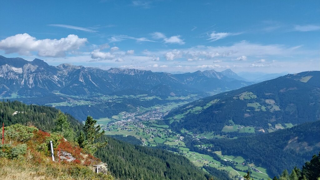 <Mit dem Taxi fahren wir nach Haus im Ennstal und nehmen dort die Tauernseilbahn hinauf zur Krumholzhütte (1.840 m). Von hier starten wir unsere aussichtsreiche Rundwanderung, die uns zunächst auf den Hauser Kaibling (2.015 m) und weiter zur Bärfallspitze (2.150 m) führt. Immer wieder genießen wir weite Blicke auf die Schladminger Tauern und das Dachsteinmassiv. Nach dieser herrlichen Rundtour schweben wir mit der Seilbahn wieder ins Tal hinab und fahren zurück zum Hotel.