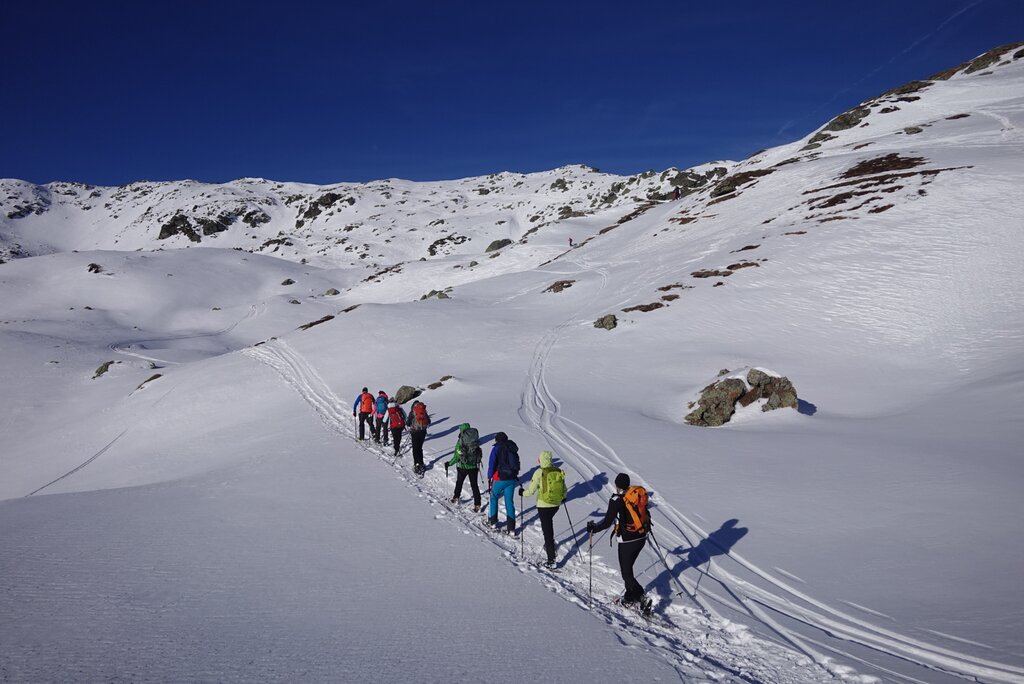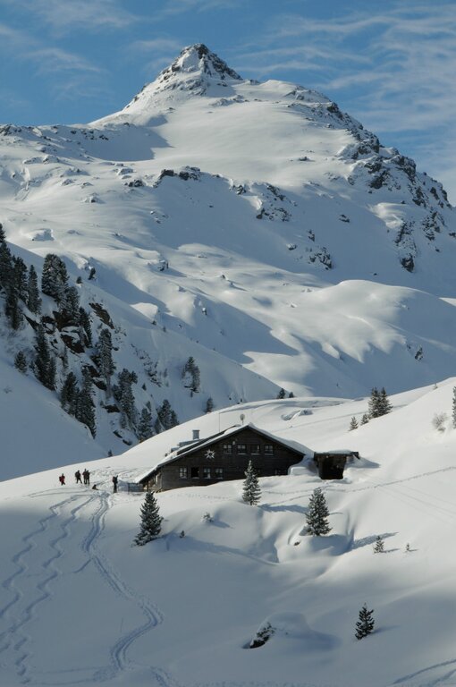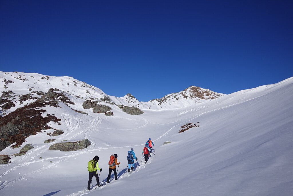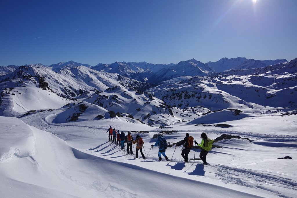 - Leihausrüstung: Schneeschuhe, Teleskopstöcke, LVS-Gerät, Lawinenschaufel und -sonde
