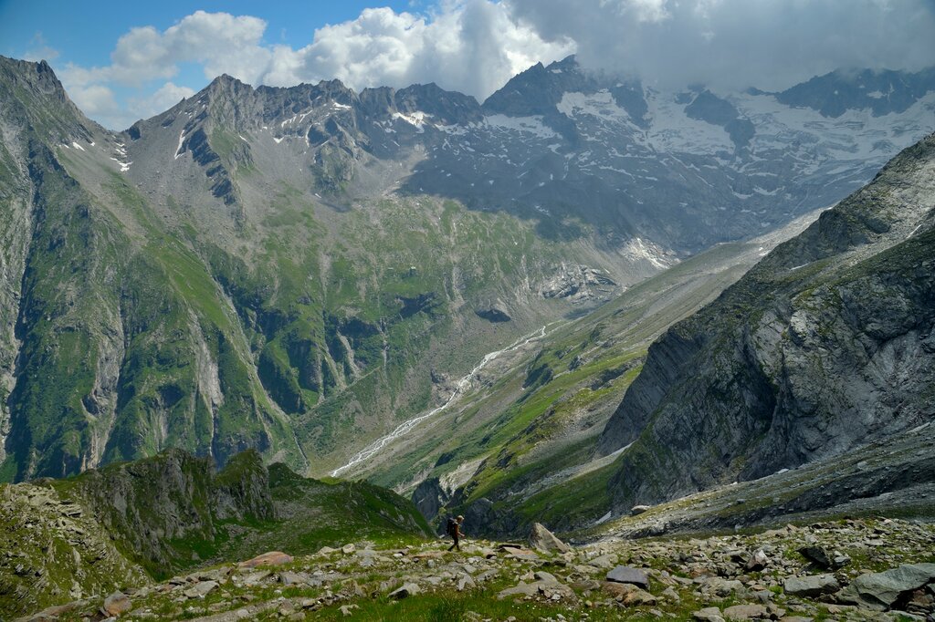<Nach der Querung des Löffler- und Eiskars erreichen wir die Lapenscharte (2.701 m) – einen der beeindruckendsten Übergänge am Berliner Höhenweg. Hier öffnet sich ein grandioses Panorama, während der markante Gigalitz (3.001 m) wie ein stiller Wächter über dem Tor zum Floitenkees steht. Von diesem hochalpinen Schauplatz steigen wir zur Greizer Hütte ab, wo wir den Tag inmitten imposanter Bergkulisse ausklingen lassen.