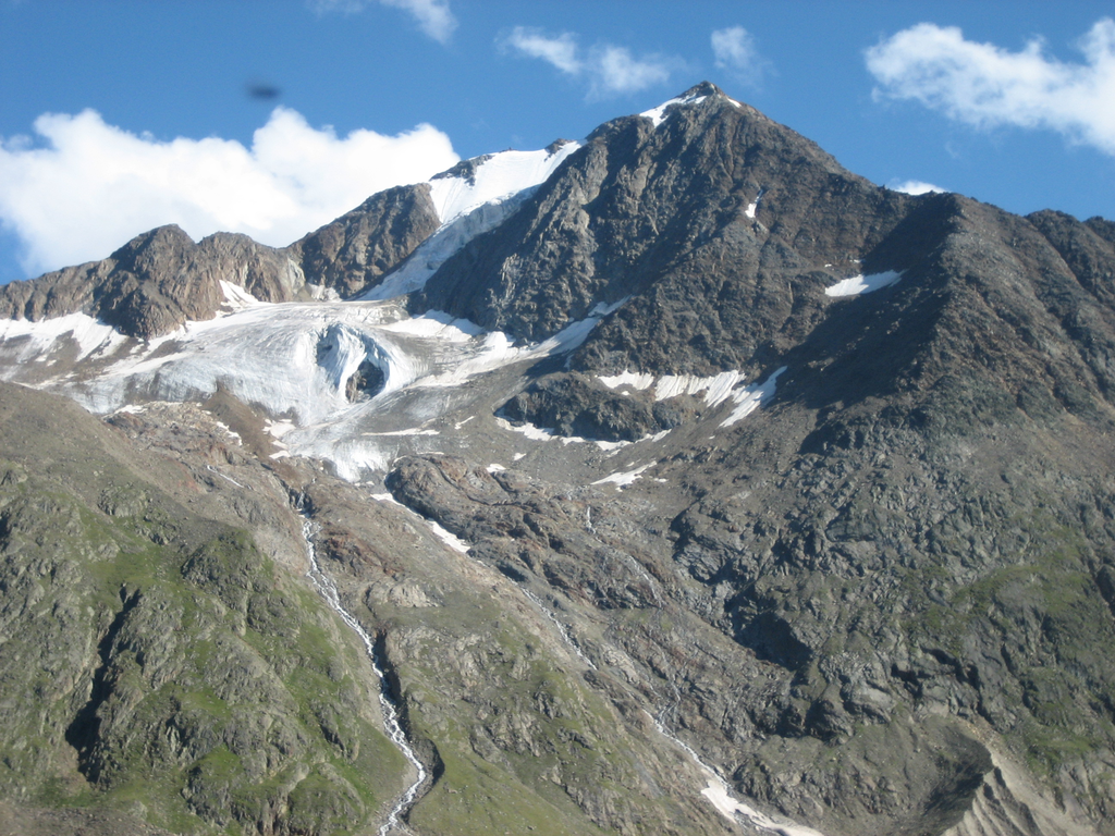 <Weiter den Niederjochbach entlang steigen wir auf, bis wir das erste Mal Kontakt mit dem ewigen Eis des Niederjochferners haben. Bei einer ersten leichten Gletschertour holen wir uns wieder die Routine im Gehen mit Steigeisen und in der Seilschaft. Heutiger Höhepunkt ist der Gipfel des Similaun (3.606 Meter). Über den Kleinen Similaun steigen wir zu unserem heutigen Quartier, der Similaunhütte, ab. -