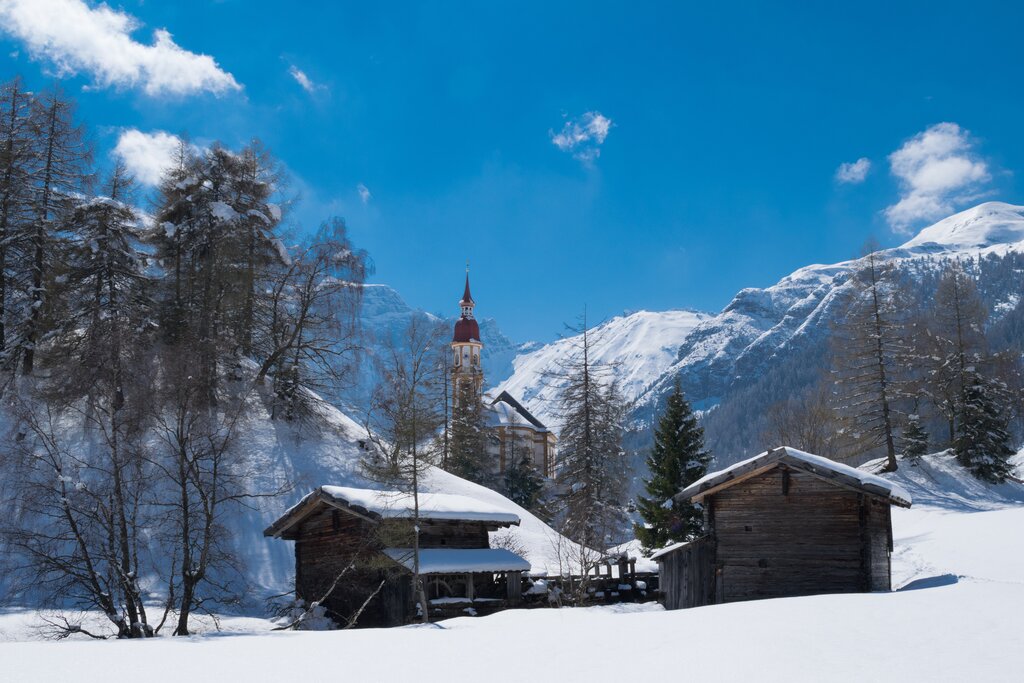 Das verschneite Obernbergtal ist ein ruhiges Seitental in den Stubaier Alpen. Ein malerisches Kirchlein, ein idyllischer Talabschluss, ein wunderbarer Bergsee - und darüber thront, als stiller Wächter, die massive Berggestalt des Obernberger Tribulaun. Das Obernbergtal ist bei Schneeschuhwanderern in Tirol besonders beliebt.