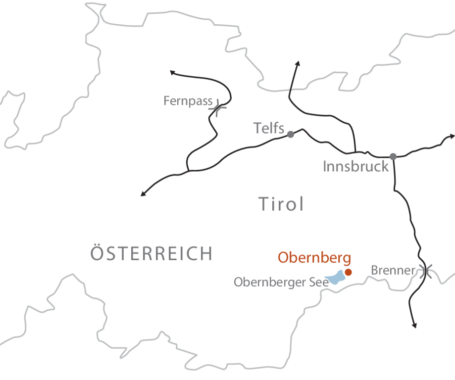 Autobahn Innsbruck - Brenner bis Ausfahrt Nösslachjoch, auf der Bundesstraße weiter bis Obernberg. Kostenlose Parkmöglichkeit direkt beim Hotel.