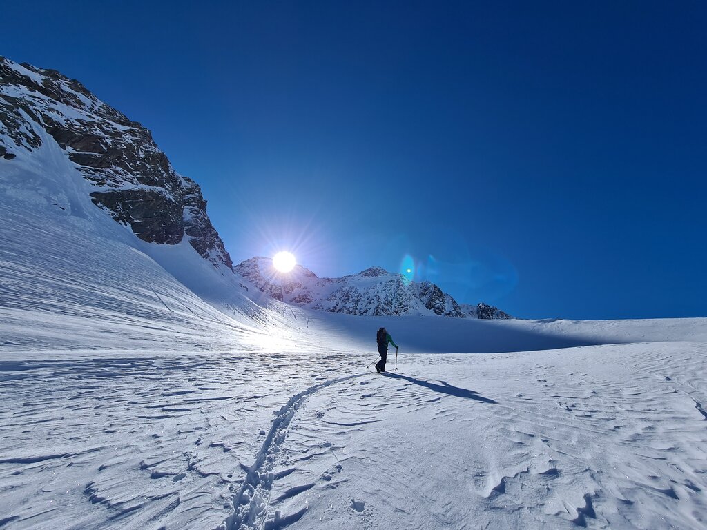 - Grundkenntnisse in Lawinenkunde, Skitechnik und Tourenplanung werden vermittelt