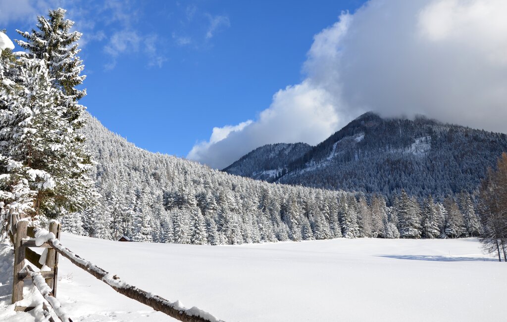 <Bequem fahren wir mit dem Bus nach Wildermieming und starten dort zu einer leichten Winterwanderung. Unser Weg führt durch stille Wälder und offene Almflächen bis zum Strassberghaus und wieder zurück. Die Strecke ist geprägt von einer herrlichen Tiroler Idylle und lädt dazu ein, die ruhige Winterlandschaft in vollen Zügen zu genießen.