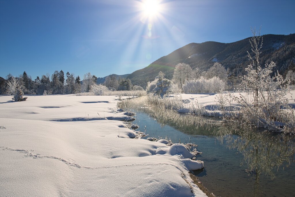 <Nach dem Frühstück brechen wir ins Salzkammergut auf. Nach einer kurzen Busfahrt wandern wir um den winterlichen, blau bis türkis leuchtenden Fuschlsee. Das meist unverbaute Seeufer bietet traumhafte Ausblicke auf den See und die umliegende Bergwelt des Salzkammerguts.