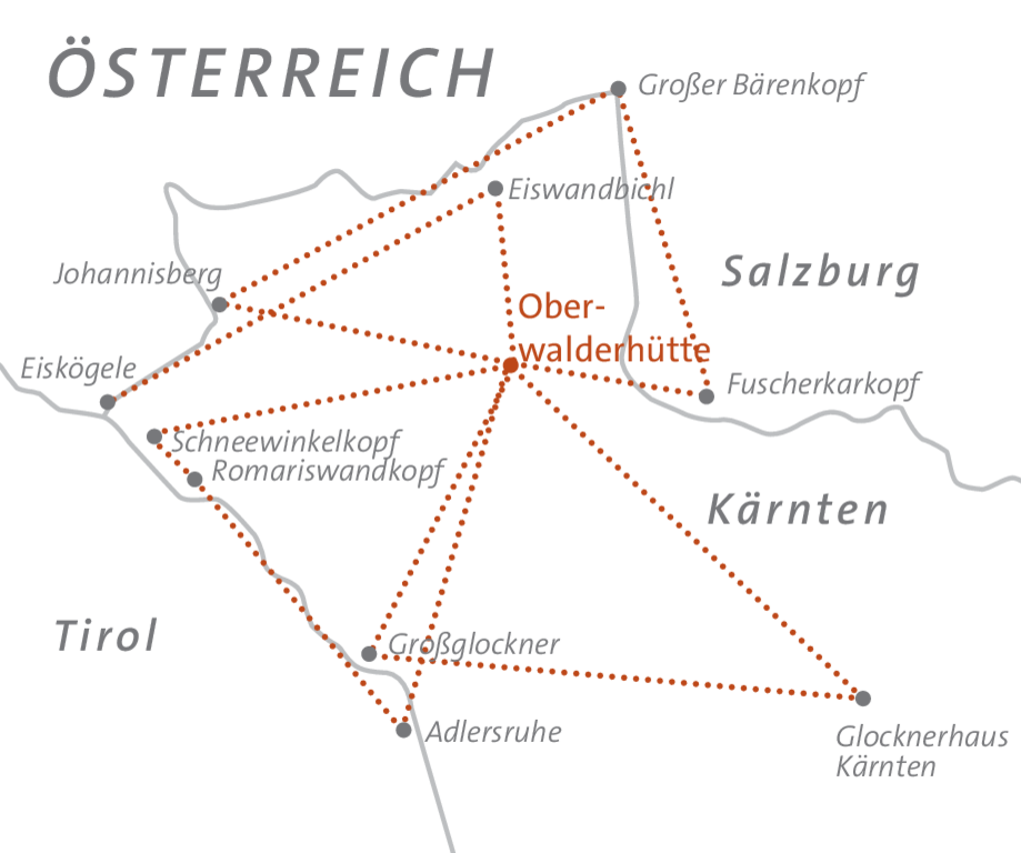 Wenn erste Hochtouren erfolgreich absolviert sind, locken steilere Ziele. Der Aufbaukurs vermittelt uns die Kenntnisse für anspruchsvollere Routen in Eisflanken bis 50 Grad Steilheit und leichten Felspassagen. Standplatzbau und Seilhandling beim Klettern in der Seilschaft stehen auf dem Programm. Um die Oberwalderhütte finden wir dafür bestes Gelände. Übungstouren werden uns durch die kleine Nordwand des Eiswandbichl oder die Schneewinkelkopf-Nordwand führen. Zum Fuscherkarkopf geht es im leichten Felsgelände. Nach einem Wechsel zur Erzherzog-Johann-Hütte dann der Kursabschluss am Großglockner.