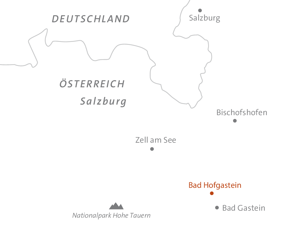 <Unsere erste Wanderung führt uns vom Hotel durch den Ortskern von Bad Hofgastein. Ein kurzer Anstieg bringt uns auf den Höhenweg, der auf 1000 m Seehöhe an der Ostflanke des Tals entlangführt. Auf schön angelegten Wegen, mit tollen Aussichten auf die umgebende Berglandschaft, stimmen wir uns auf die Wanderwoche ein. Bald erreichen wir das geschichtsträchtige Bad Gastein. Bäderkultur und Grand Hotel Flair mischt sich hier mit einer spannenden Kunstszene. Absolut spektakulär ist der große Wasserfall, der mitten durch den Ortskern rauscht. Nach einer Einkehr fahren wir mit dem Bus zurück zum Hotel oder schlendern auf eigene Faust noch durch die Gassen von Bad Gastein.