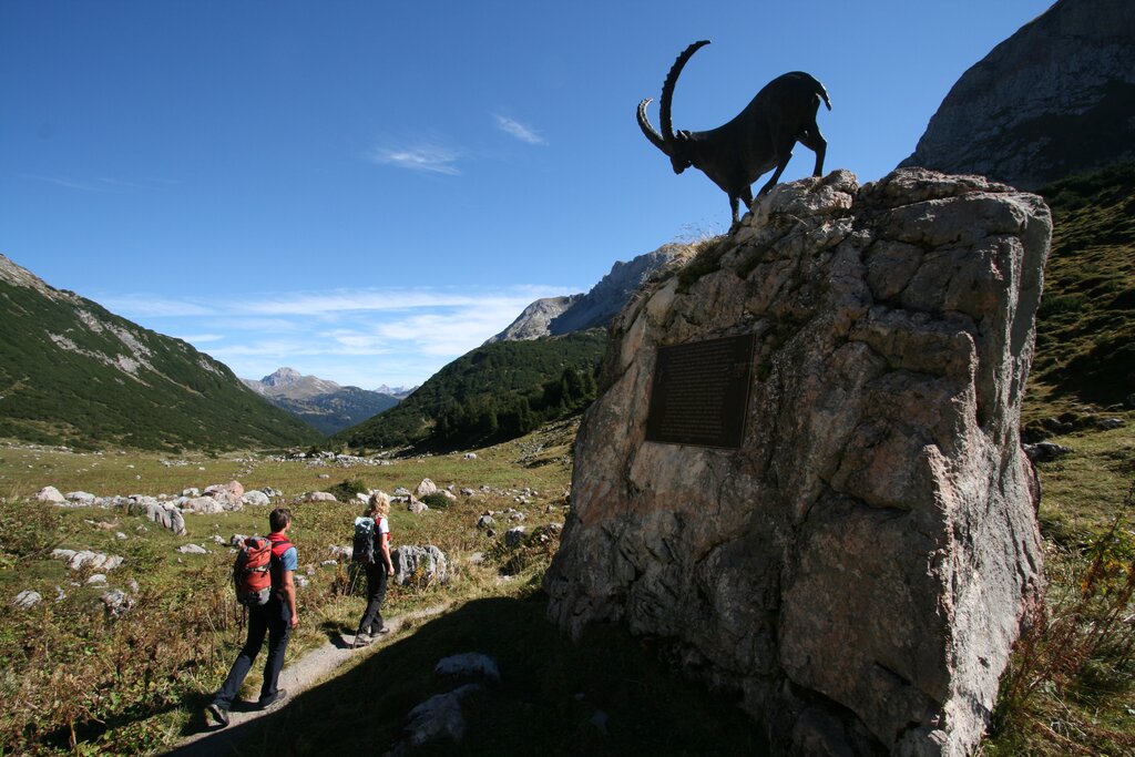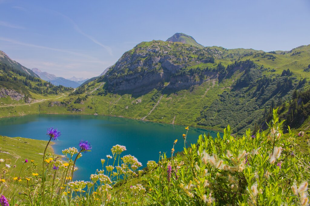 <Der Ortsbus bringt uns am Morgen zur Endhaltestelle Formarinsee. Über den Güterweg wandern wir ein Stück hinab zum Formarinsee und genießen die wunderschönen Panoramablicke über den See. Hier im Lechquellgebiet kann man im Frühjahr einige Quellen gleich neben dem Weg beobachten. Weiter geht es über den Lechuferweg und vorbei am Steinbock-Denkmal, welches an die Wiedereinsetzung des Steinwilds seit 1958 erinnert. Wir folgen dem Wanderweg, vorbei an Wasserfällen, Blumenwiesen und über Holzbrücken bis nach Lech am Arlberg.