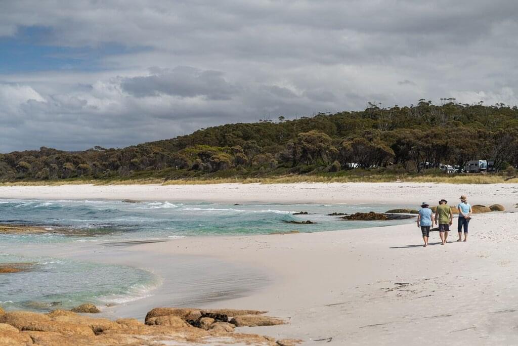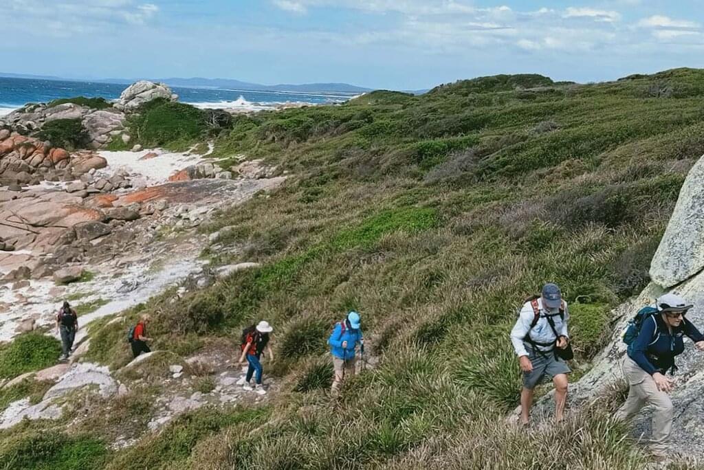 Die heutige Wanderung verläuft größtenteils flach entlang herrlicher weißer Sandstrände mit gelegentlichen Granitfelsen, die die Wanderung auflockern. Um den Deep Creek zu durchqueren, musst du eventuell waten; das Wasser kann bei Flut und nach viel Regen bis zu den Oberschenkeln hoch stehen, also nimm eine Ersatzhose und ein Handtuch mit in den Bus!