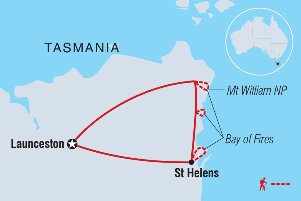 Dein Tag beginnt heute in aller Frühe mit der Abfahrt um 7:30 Uhr von Launceston in Richtung Osten nach St. Helens. Nach einer kurzen Pause mit selbstgemachtem Morgentee geht es weiter zur Binalong Bay und zum südlichen Ende von Larapuna und der Bay of Fires. Hier startest du deine erste Wanderung in der Humbug Point Conservation Area und erkundest die Küstenlinie nördlich der Binalong Bay. Halte unterwegs Ausschau nach einheimischen Wildtieren wie Wallabys und Schnabeligeln und wenn du ein Vogelliebhaber bist, hast du Glück - vielleicht entdeckst du hier Austernfischer, Möwen und sogar Pelikane, die in die Lüfte steigen. Nach der heutigen Wanderung checkst du für die nächsten drei Nächte in deine Unterkunft in St. Helens ein, einer malerischen Stadt, die perfekt gelegen ist, um die Wanderwege an der Nordostküste Tasmaniens zu erkunden. Heute Abend genießt du ein Abendessen mit deinen Mitreisenden.