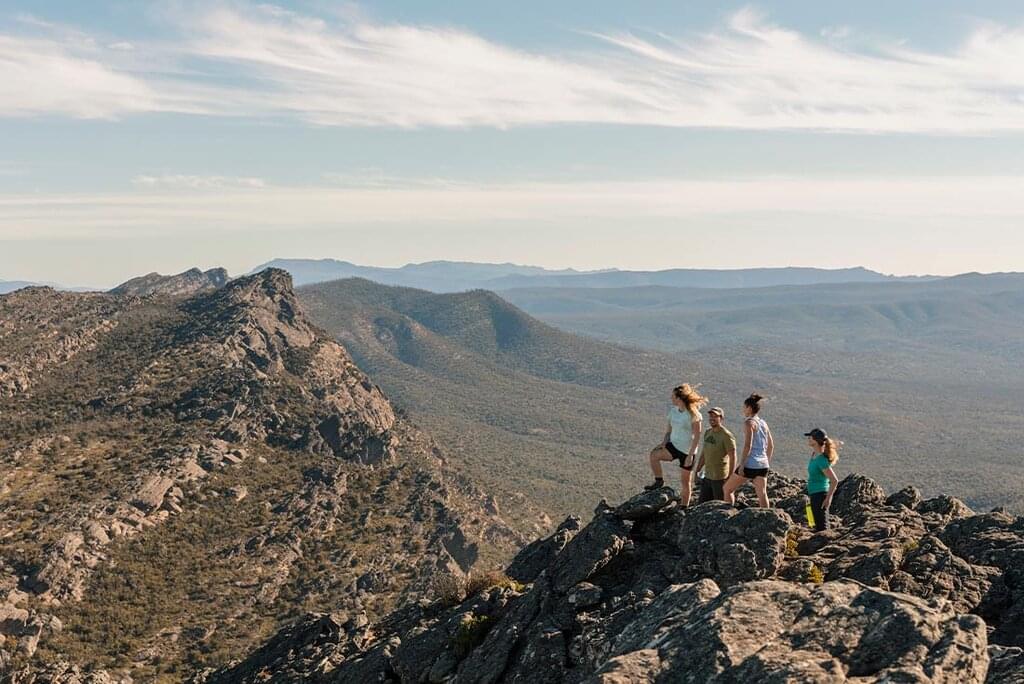 <Für die heutige Wanderung fährst du nach Süden. Du beginnst mit einem Aufstieg durch Krüppelwald auf die Serra Range - dies ist einer der abgelegensten Abschnitte des Grampians Peaks Trail, also atme tief durch und lass dich von der natürlichen Schönheit um dich herum inspirieren! Mach dich auf den Weg zur westlichen Victoria Range in Richtung Djardji-Djawara (Schwester). Im Frühling gibt es hier eine Fülle von Wildblumen, darunter eine Reihe von Heidekraut, Orchideen, Grevillea, Buschwindröschen und blaue Lametta-Lilien. Später kehrst du zu deiner Unterkunft zurück, um zu Abend zu essen und vielleicht deinen letzten Abend mit einem Drink zu feiern.