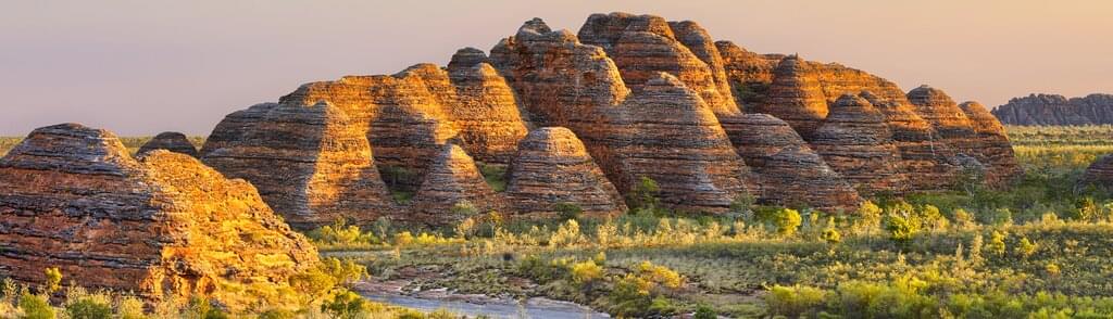 <Verbringe den nächsten Tag damit, die Höhepunkte des Purnululu Nationalparks zu erkunden, von denen die Bungle Bungle Domes die bekanntesten sind. Flüsse haben diese Landschaft mit ihren einzigartigen orange-schwarz gestreiften geologischen Formationen über einen Zeitraum von 20 Millionen Jahren geschaffen. Unglaublicherweise wussten bis in die frühen 1980er Jahre nur die Einheimischen von ihrer Existenz. Um die einzigartige Landschaft zu schützen, wurde das Gebiet 1987 zum Nationalpark erklärt und hat nun den Status eines UNESCO-Welterbes. Heute erkundest du die Echidna-Schlucht, die für ihre hoch aufragenden Livistonia-Palmen bekannt ist. Mach einen kurzen Spaziergang in die wunderschöne Cathedral Gorge, wo hoch aufragende Felsen ein natürliches Amphitheater bilden.