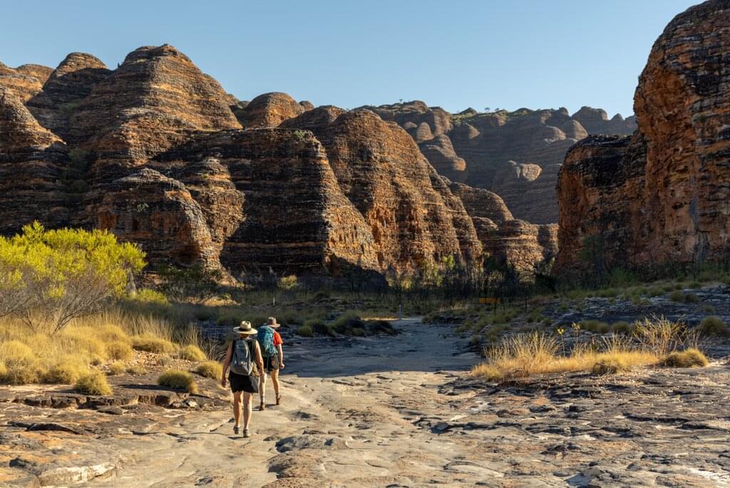 Nach einem gemütlichen Morgen fährst du auf dem Great Northern Highway in Richtung Süden zum Purnululu National Park, der Heimat der großartigen Bungle Bungles. Bei zwei Übernachtungen in unserem privaten Bungle Bungle Safari Camp im Herzen des Parks hast du einen ganzen Tag Zeit, um die Höhepunkte dieses außergewöhnlichen Nationalparks zu erkunden, von denen die Bungle Bungle Domes am bekanntesten sind. Flüsse haben diese Landschaft aus einzigartigen orange-schwarz gestreiften geologischen Formationen über einen Zeitraum von 20 Millionen Jahren geschaffen. Unglaublicherweise wussten bis Anfang der 1980er Jahre nur die Einheimischen von ihrer Existenz; nachdem sie von anderen entdeckt wurde, wurde das Gebiet 1987 zum Nationalpark erklärt. Wir erkunden die Echidna Chasm (2 km), die für ihre hoch aufragenden Livistonia-Palmen bekannt ist, und machen eine kurze Wanderung (2-3 km) in die atemberaubende Cathedral Gorge, wo hoch aufragende Felsen ein natürliches Amphitheater bilden.