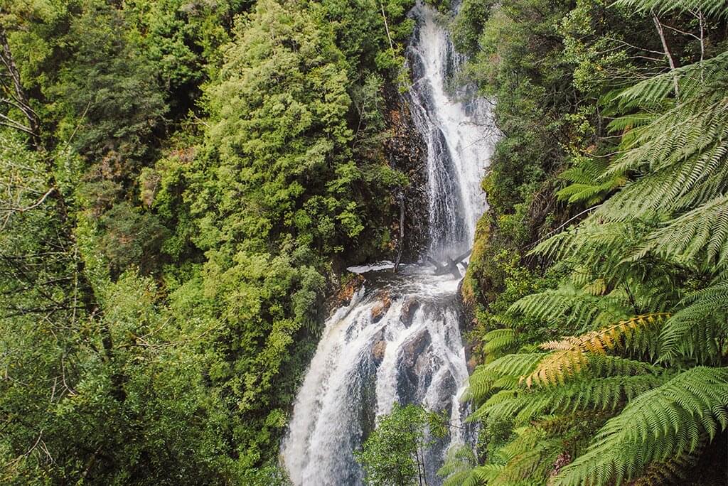 <Heute fährst du über den Rocky Cape National Park nach Corinna - Heimat von windgepeitschten Heidelandschaften, Meereshöhlen, Felspools und verdrehten Felsen, die über Millionen von Jahren entstanden sind. Weiter geht es zum historischen Leuchtturm am Table Cape und zum Boat Harbour Beach. Halte an der Hellyer Gorge und wandere dann zu den Philosopher Falls bei Waratah. Heute Abend schlägst du dein Quartier in der abgelegenen, ländlichen Stadt Corinna in einer restaurierten Bergarbeiterhütte auf, wo du die Zeit ohne Telefon genießen kannst, denn hier draußen gibt es keinen Empfang! Genieße ein gemeinsames Abendessen mit deinen Mitreisenden und beobachte den Sonnenuntergang.