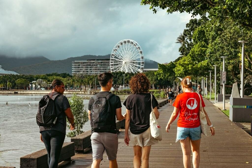 <Willkommen in Cairns! Oder Gimuy in der Sprache der traditionellen Besitzer des Landes, auf dem sich Cairns heute befindet. Cairns ist das Tor zu Australiens Great Barrier Reef und dem Daintree Rainforest. Dein Abenteuer beginnt mit einem Willkommenstreffen um 18 Uhr, bei dem du deinen Gruppenleiter und deine Mitreisenden kennen lernst. Wenn du in Cairns ankommst und noch etwas Zeit hast, kannst du den Botanischen Garten besuchen oder einfach an der Uferpromenade entlang schlendern und in eine der Bars gehen, die du magst.
