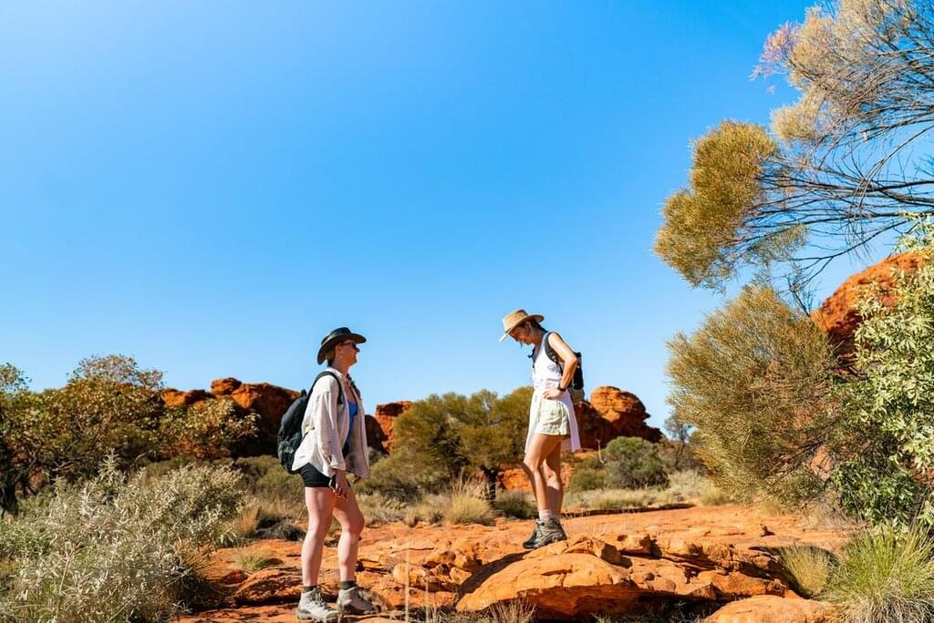 Die Reisezeit beträgt heute etwa 4,5 Stunden. Für den 6 km langen Kings Canyon Rim Loop brauchst du etwa 3-4 Stunden. Es handelt sich um eine Wanderung der Stufe 4 (mittelschwer bis anspruchsvoll), die du nur machen solltest, wenn du fit und gesund bist. Dein Wanderführer kann dir auch kürzere Varianten vorschlagen, wenn du eine leichtere Wanderung suchst. Für alle Wanderungen im Nationalpark ist festes, geschlossenes Schuhwerk erforderlich. -