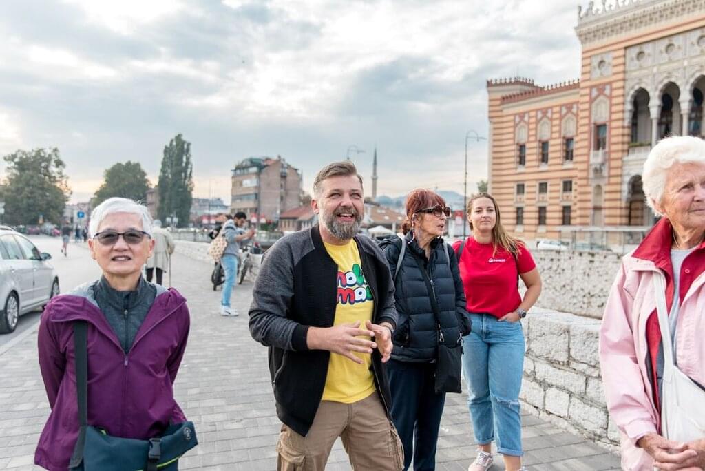 <Heute kannst du die Stadt auf eigene Faust erkunden. Probiere dich durch die Marktstände von Bascarsija, besuche eines der Museen, die dem Jugoslawienkrieg gewidmet sind, oder fahre mit der Seilbahn auf den Berg Trebevic, um die Aussicht über die Stadt zu genießen. Du beendest den Tag mit einem selbstgekochten Essen bei deinen Gastgebern Mustafa und Mersiha, die stolz behaupten, dass ihre Küche den besten Blick über Sarajevo bietet. Der Abend beginnt damit, dass du lernst, wie bosnische Fladenbrote hergestellt werden, bevor du ein herzhaftes Essen mit sogan dolma (gefüllte Zwiebeln) und dolam (gefüllte Paprika) zu dir nimmst. Natürlich darfst du auch die frisch zubereitete Pita probieren. -