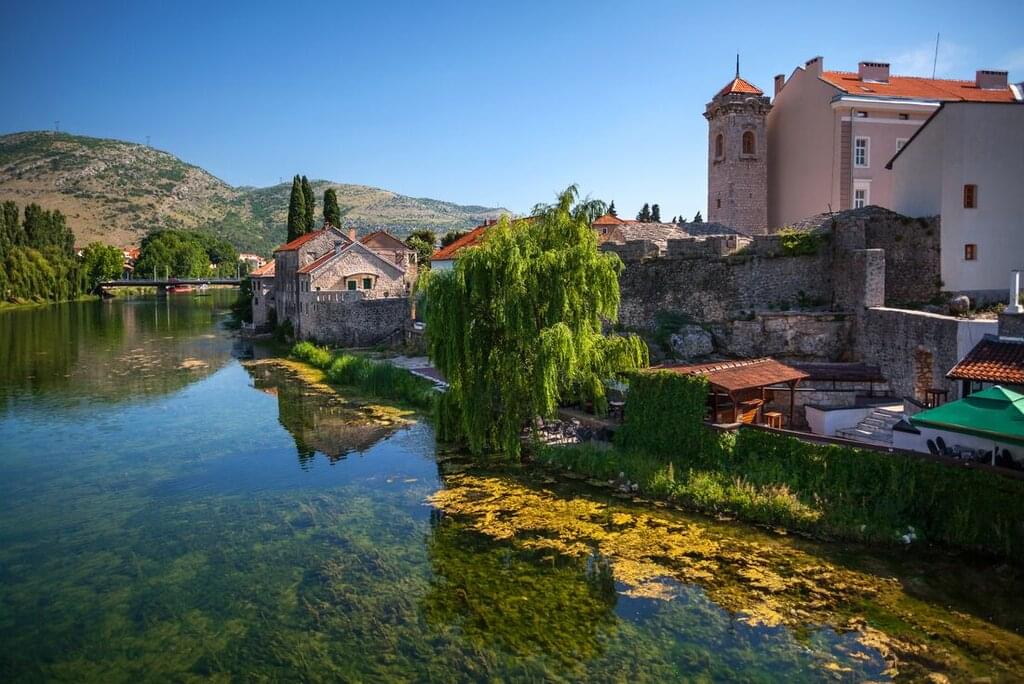 <Heute überquerst du die Grenze und reist nach Bosnien und Herzegowina, wo du an mehreren malerischen Orten anhältst. Dein erster Halt ist Trebinje, wo du mit deinem Reiseleiter einen Rundgang durch die kompakte Altstadt und den Marktplatz unternimmst, gefolgt von einem Halt an einem orthodoxen Kloster, um den berühmten Tvrdos-Wein zu probieren. Nachdem du deinen Durst gestillt hast, geht es weiter nach Stolac, wo du zu Mittag isst und die Gelegenheit hast, diese alte Stadt am Ufer des blauen Flusses Bregava zu erkunden. Nachdem du die Sehenswürdigkeiten von Stolac erkundet hast, geht es weiter nach Mostar. Hier begleitest du einen ortskundigen Fremdenführer auf einer Tour durch die Stadt, bei der du erfährst, warum es eine so starke Verbindung zwischen den Einheimischen und dem Kaffee gibt.