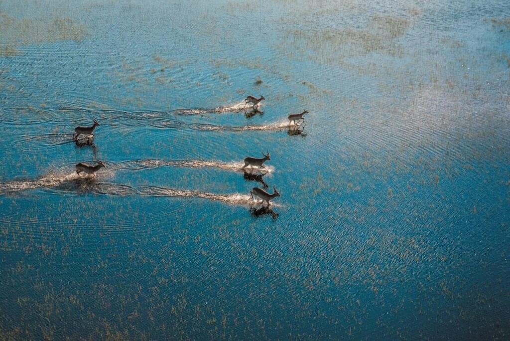 <Heute Morgen ist Zeit für eine morgendliche Pirschfahrt für diejenigen, die diesen wunderschönen Park weiter erkunden möchten. Neben Elefanten kannst du vielleicht auch andere edle Tiere im Chobe-Nationalpark sehen - von Giraffen und Zebras bis hin zu Impalas und Tsessebe (afrikanische Antilopen). Dann ist es an der Zeit, nach Maun zu fahren. Diese Stadt ist das Tor zu einem der berühmtesten und komplexesten Ökosysteme der Welt - dem Okavango-Delta. Die Fahrt dorthin ist etwas lang, also schnapp dir einen Fensterplatz, wenn du kannst, und nutze die Gelegenheit, um die sich ständig verändernde Landschaft aufzusaugen.