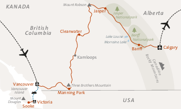 Von Vancouver der schönsten Stadt Kanadas aus führt uns diese Wanderreise erst nach Vancouver Island und endet inmitten der beeindruckenden Bergwelt der Kanadischen Rocky Mountains. Wir wandern entlang von bizarren Canyons, mächtigen Gletschern und malerischen Seen in einer unvergleichlichen Gebirgskulisse. Ohne lange, anstrengende Aufstiege steht bei dieser Reise der Genuss der imposanten und kontrastreichen Landschaft Westkanadas im Vordergrund.