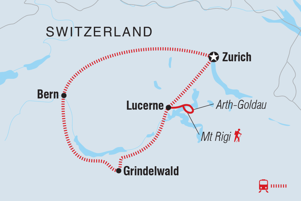 <Hoi! Willkommen in der Schweiz. Dein Abenteuer beginnt mit einem Begrüßungstreffen um 18 Uhr heute Abend in Zürich. Wenn du früher ankommst, kannst du die Großmünsterkirche besichtigen, an der Promenade des Zürichsees spazieren gehen oder deine Naschkatzen mit einer Führung und Verkostung im Lindt Home of Chocolate Museum verwöhnen. Nach deinem Treffen begleitest du deinen lokalen Leiter auf einem Orientierungsspaziergang. Später lernst du deine Mitreisenden vielleicht bei einem Abendessen in einem lokalen Restaurant kennen.