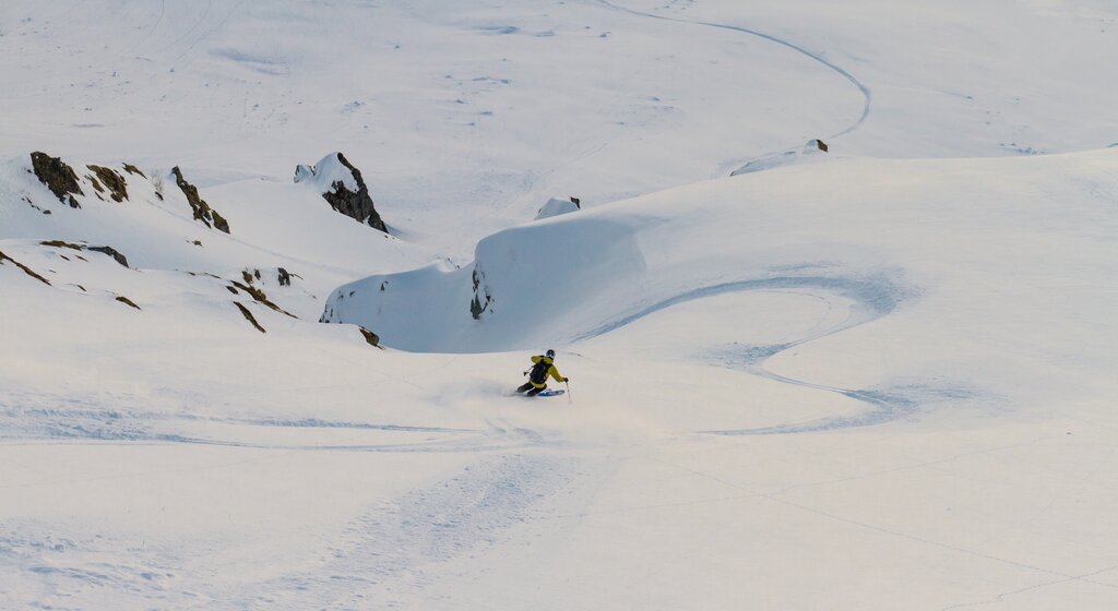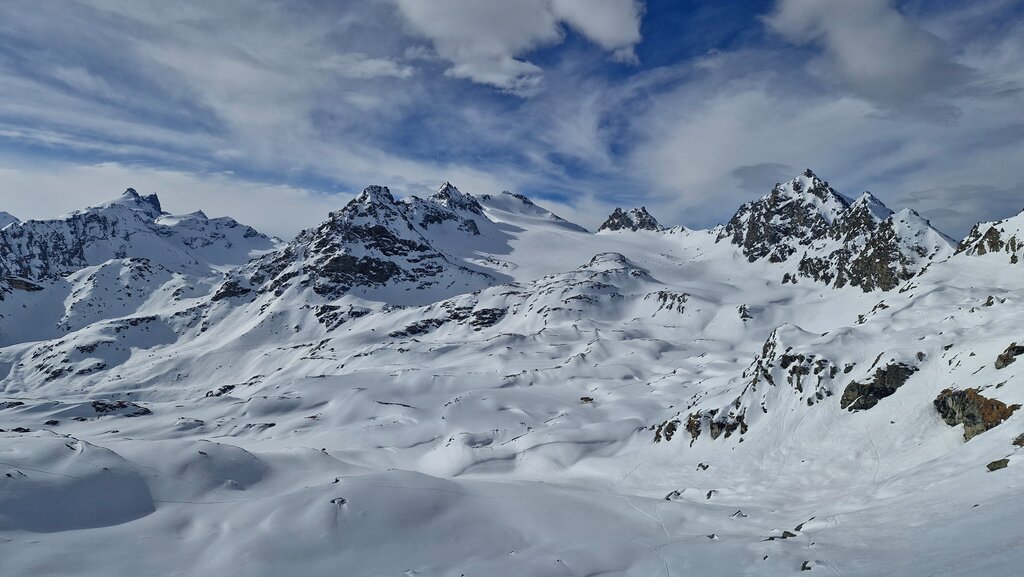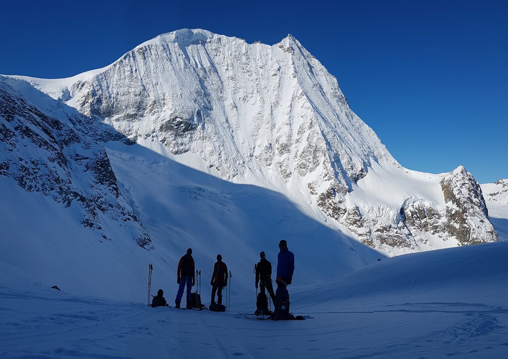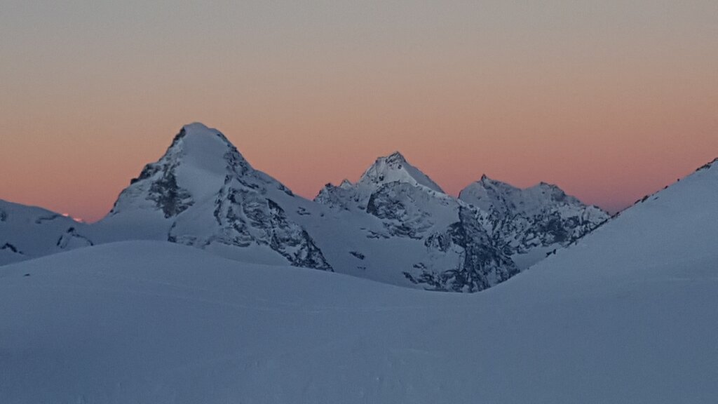 <Raus aus dem Skigebiet und hinein in die unberührte Bergwildnis! Wir starten mit einem Aufstieg zum Col de la Chaux (2.940 m), begleitet vom beeindruckenden Blick auf den mächtigen Bec des Rosses. Eine lange, genussvolle Abfahrt bringt uns zum Lac du Petit Mont Fort. Von dort geht es weiter zum Col de Momin (3.002 m), wo der erste Gipfel in Sicht kommt: die Rosablanche auf 3.335 Metern.