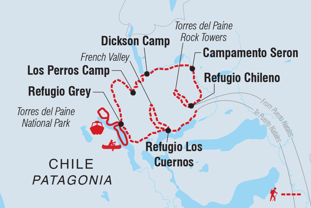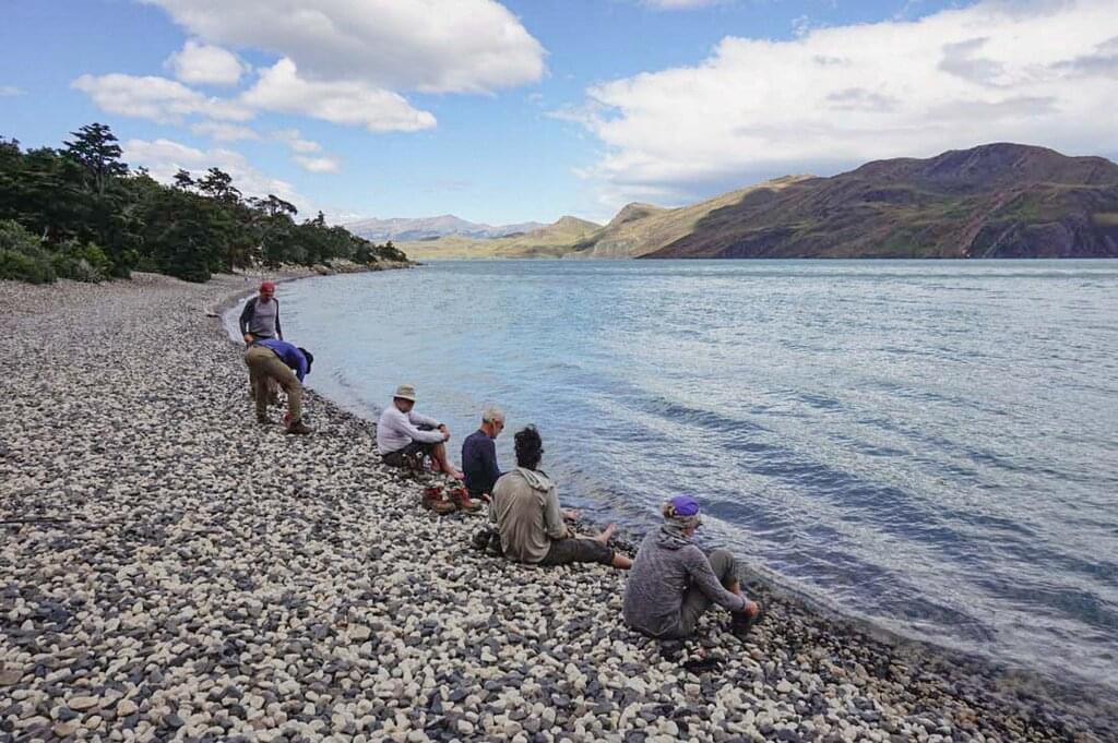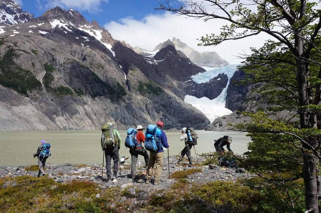 <Heute Morgen packst du deine Ausrüstung ein und machst dich auf den Weg über die alten Gletschermoränen. Hier beginnt deine Wanderung um das Paine-Massiv - die zerklüfteten Berggipfel, die sich zwischen blauen und grünen Seen, Flüssen und Wäldern erheben. Am Fuße des Massivs kannst du einen Schnappschuss von der Gruppe am türkisblauen Wasser machen und die wirklich atemberaubende Landschaft genießen. Wandere durch einen Buchenwald und halte Ausschau nach australischen Sittichen, verschiedenen Gänsearten und dem patagonischen Fuchs. Nach ein paar Stunden erreichst du deine Unterkunft im Camp Seron. Bis zum Abendessen hast du etwas Freizeit, um den Campingplatz zu erkunden, etwas zu trinken oder deine Mitwanderer kennenzulernen, während du deine Zelte aufschlägst.