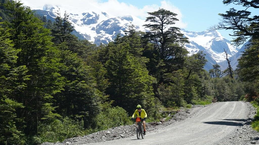<Die Route beginnt mit einer wunderschönen Landschaft, umgeben von heimischen Wäldern und mit Blick auf den Yelcho-Gletscher. Wir werden den Moraga-Hang bis zum Pass in Angriff nehmen, wo die Abfahrt beginnt und wir die beeindruckenden Spuren bewundern können, die die verheerende Überschwemmung von Villa Santa Lucía (2017) hinterlassen hat, ein Ereignis, das die Landschaft der Stadt und das Leben ihrer Bewohner radikal verändert hat. Wir fahren weiter auf der asphaltierten Straße, die an den Flüssen Frío und Palena entlangführt, und gelangen in die Region Aysén, wo wir in Villa Vanguardia ein schönes Picknick genießen und schließlich diese lange Etappe in der Stadt La Junta beenden.