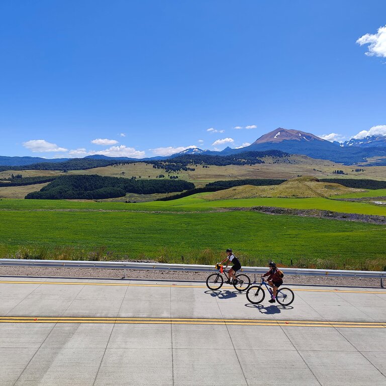 <Die Route beginnt mit einer wunderschönen Landschaft, umgeben von heimischen Wäldern und mit Blick auf den Yelcho-Gletscher. Wir werden den Moraga-Hang bis zum Pass in Angriff nehmen, wo die Abfahrt beginnt und wir die beeindruckenden Spuren bewundern können, die die verheerende Überschwemmung von Villa Santa Lucía (2017) hinterlassen hat, ein Ereignis, das die Landschaft der Stadt und das Leben ihrer Bewohner radikal verändert hat. Wir fahren weiter auf der asphaltierten Straße, die an den Flüssen Frío und Palena entlangführt, und gelangen in die Region Aysén, wo wir in Villa Vanguardia ein schönes Picknick genießen und schließlich diese lange Etappe in der Stadt La Junta beenden.