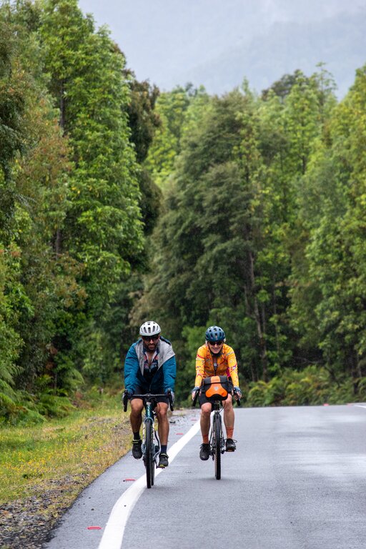 Puerto Varas – Puerto Tranquilo (600 km) – Wir beginnen unsere Route mit Fährfahrten über Flussmündungen und Fjorde, die uns mit verschiedenen Orten der Carretera Austral verbinden. Diese Radtour lädt Sie ein, die spektakulärsten Landschaften der Carretera Austral Norte kennenzulernen. Wir beginnen die Reise mit einer Fahrt durch die Reloncavi-Mündung und die bimodale Route und radeln inmitten von Nationalparks, Bergen, Seen, Flüssen, Fjorden, Gletschern und Urwäldern der Seenregion und Aysén. Sie besuchen mehr als 10 Orte, darunter Hornopirén, Chaitén, Villa Santa Lucía, La Junta, Puyuhuapi, Mañihuales, Puerto Aysén, Coyhaique, Cerro Castillo und Puerto Tranquilo. Wir übernachten in den besten Unterkünften und genießen den bestmöglichen Service in dieser abgelegenen Region, kombiniert mit Abenteueraktivitäten und dem Kennenlernen der Geschichte, Traditionen und lokalen Kultur. Diese Route führt über asphaltierte Abschnitte und Schotterstraßen und birgt einige Herausforderungen wie die Hänge von Moraga und Queulat sowie den Cerro Castillo-Pass. Entdecken Sie spektakuläre Sehenswürdigkeiten wie den Pumalín Douglas Tompkins Nationalpark und seine Geschichte hinter der weltweit größten Landspende für Naturschutzzwecke, uralte Alerce-Bäume, den Yelcho-Gletscher, den Palena-Fluss, den Risopatrón-See, den majestätischen Hängegletscher im Queulat-Nationalpark, die Aussicht im Cerro Castillo-Nationalpark und die Marmor-Kapellen. Verpassen Sie nicht dieses großartige Erlebnis, bei dem Freundschaften, multikulturelle Begegnungen zwischen Teilnehmern und Gastgemeinden sowie die Möglichkeit, auf nachhaltige Weise zu reisen und einen Beitrag zu leisten, entstehen können. Nutzen Sie diesen einzigartigen Moment für ein transformatives und unvergessliches Radfahrerlebnis in Patagonien, Chile.