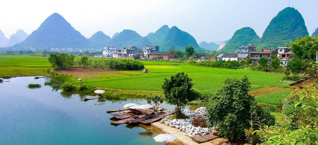 - Fahrten mit dem Bambusfloß und Fahrrad in Yangshuo