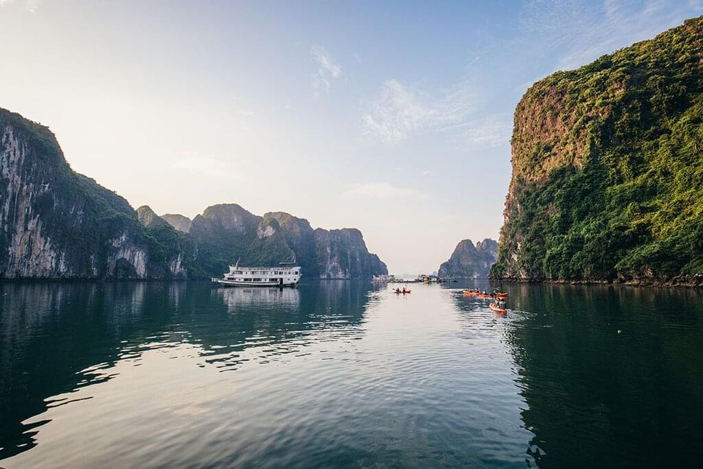 • Verbringe eine Nacht auf einer traditionellen Dschunke in der Halong-Bucht - eines der Naturwunder Vietnams und UNESCO-Weltkulturerbe. In deiner Freizeit kannst du eine Kajaktour zwischen den Karstfelsen unternehmen, um eine andere Perspektive zu bekommen.