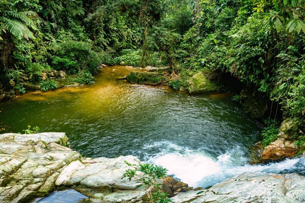 <Dein zweiter Wandertag führt dich zum WIWA Community Camp, wo du El Mamo triffst, der als Weiser und spiritueller Führer der Gemeinschaft gilt. Der indigene Führer wird dir von der Art und Weise erzählen, wie sie hier leben und welche Rolle Frauen und Männer in der Gemeinschaft haben. Danach wanderst du durch den feuchten Tropenwald nach Mutanyi - dem kleinen indigenen Dorf des Kogi-Volkes, in dem nur 20 Hütten aus Lehm, Holz und Palmen stehen. Setze deine Wanderung entlang des Buritaca-Flusses fort, bis du den Mumake-Campingplatz erreichst, wo du eine Pause einlegst. Dort angekommen, setzt du dich an das kristallklare Wasser des Flusses, isst mit der Gruppe zu Mittag und tankst neue Energie. Danach wanderst du weiter durch die Berge und genießt die Geräusche der Natur auf deinem Weg. Die Tageswanderung endet am Campingplatz Paraiso Teyuna, wo du die Nacht verbringst. Vielleicht gehst du im natürlichen Pool schwimmen und lauschst den Geschichten und Anekdoten deiner einheimischen Führer, während die Sonne untergeht.