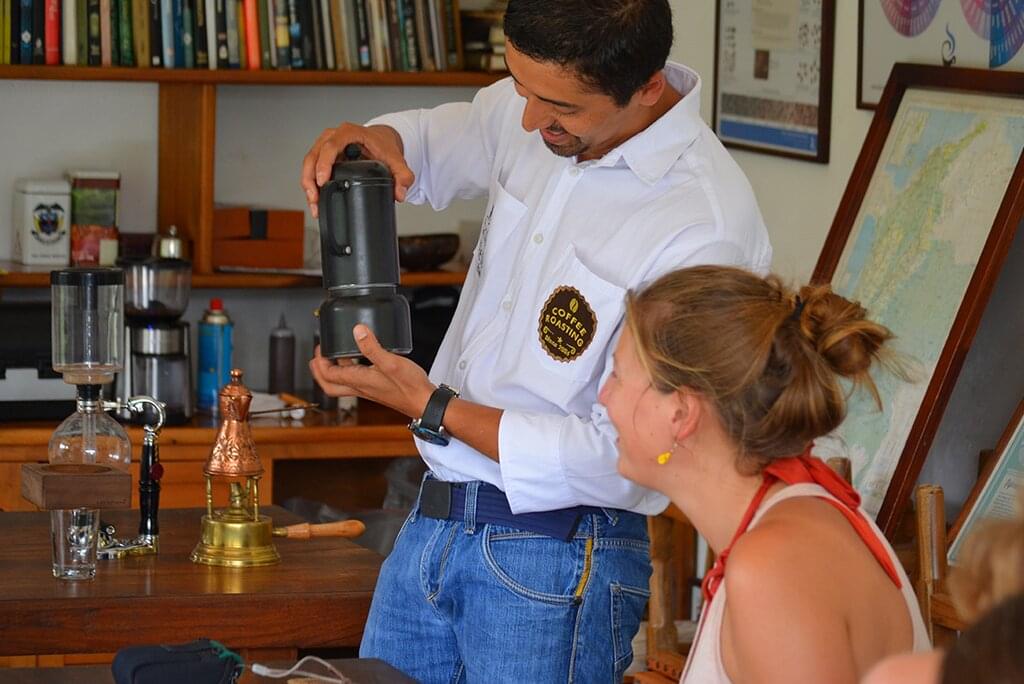<Dank der tropischen Höhenlage und der fruchtbaren Vulkanerde ist Kolumbien einer der größten Kaffeeproduzenten der Welt. Bei einer Führung durch die Kaffeeplantage und das Verarbeitungszentrum lernst du die süchtig machende Bohne noch besser kennen. Hier erfährst du alles über die Geschichte der Pflanze und die Industrie, die die Wirtschaft des Landes seit langem antreibt. Du erfährst, wie die Bohnen angebaut, geerntet, verarbeitet, getrocknet, geröstet und gemahlen werden und kannst dann aus erster Hand probieren, worum es bei dem ganzen Trubel geht. Probiere verschiedene Kaffeesorten und erhalte eine Lektion in der Zubereitung verschiedener Kaffeesorten - und trinke zum Abschluss eine dampfende Tasse frisch gebrühten Kaffee. Danach kannst du dich in der wunderschönen Umgebung der Estancia entspannen, die von grünen Hügeln und Tälern umgeben ist. -
