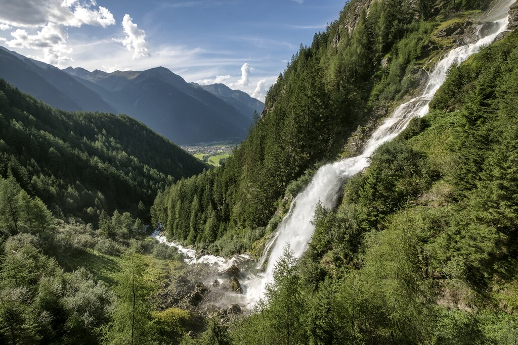 <Vorbei am Stuibenfall bei Umhausen, dem größten Wasserfall Tirols, steigen wir auf nach Niederthai. Der Weg führt uns weiter zum idyllisch gelegenen Gasthaus Wiesle, welches sich auf einer Lichtung inmitten des Hochwaldes befindet. Anschließend Abstieg ins Tal und Busfahrt ins hintere Ötztal. -