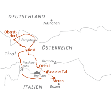 Varianten Alpenüberquerung Oberstdorf - Meran mit Hotelkomfort