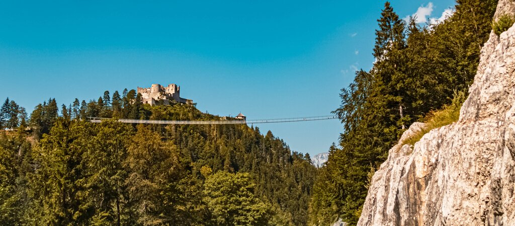 <Heute erleben wir ein kulturelles Highlight unserer Reise - die Burg Ehrenberg. Wir wandern schattig im Wald bis zur Burg und genießen die schöne Aussicht. Nach der Besichtigung der Burg steigen wir über den Klausenwald ab und genießen unsere Mittagsrast, bevor wir dann bis Heiterwang wandern. Die letzten Kilometer bis Biberwier nehmen wir die öffentlichen Verkehrsmittel.