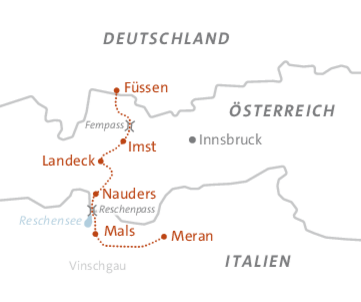Varianten Alpenüberquerung Via Claudia - Füssen nach Meran mit Hotelkomfort